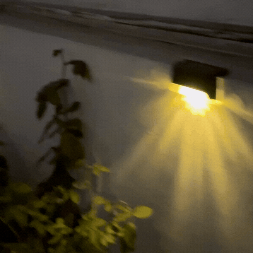 A compact solar wall light that casts a warm 3000K downward glow, creating a beautiful lighting pattern on walls, steps and pathways. It charges automatically during the day and lights up at night, offering stylish, wire-free outdoor lighting with zero electricity cost.